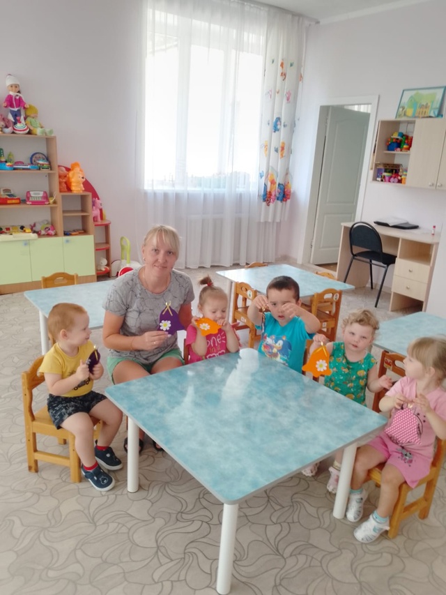 Малыши, вместе с воспитателем Телегиной Н.Н. сделали очень красивую аппликацию в виде колокольчика.