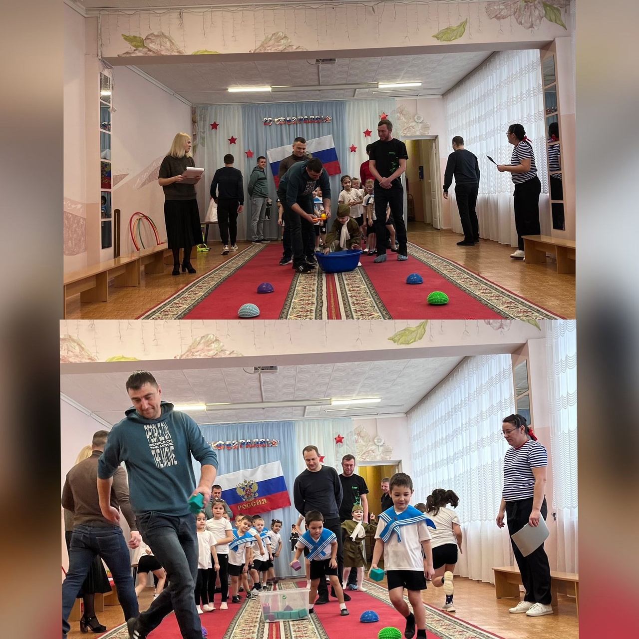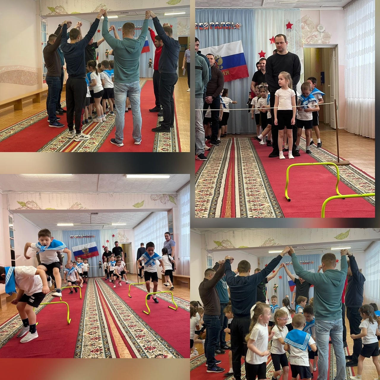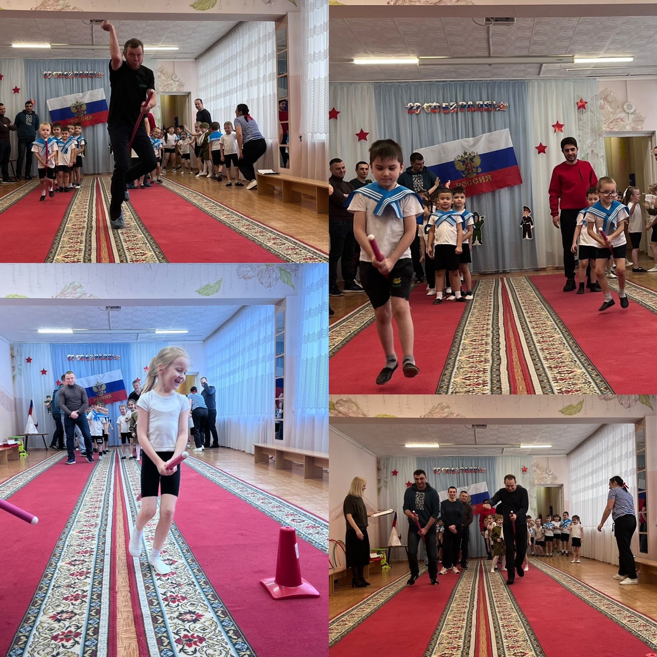 Праздник проходил в форме эстафет. Дети и их папы проявили большую активность, подарили хорошее настроение, показали какие они ловкие, выносливые, смелые и весёлые. А в подарок всем гостям ребята станцевали яркий танец "Салажата".